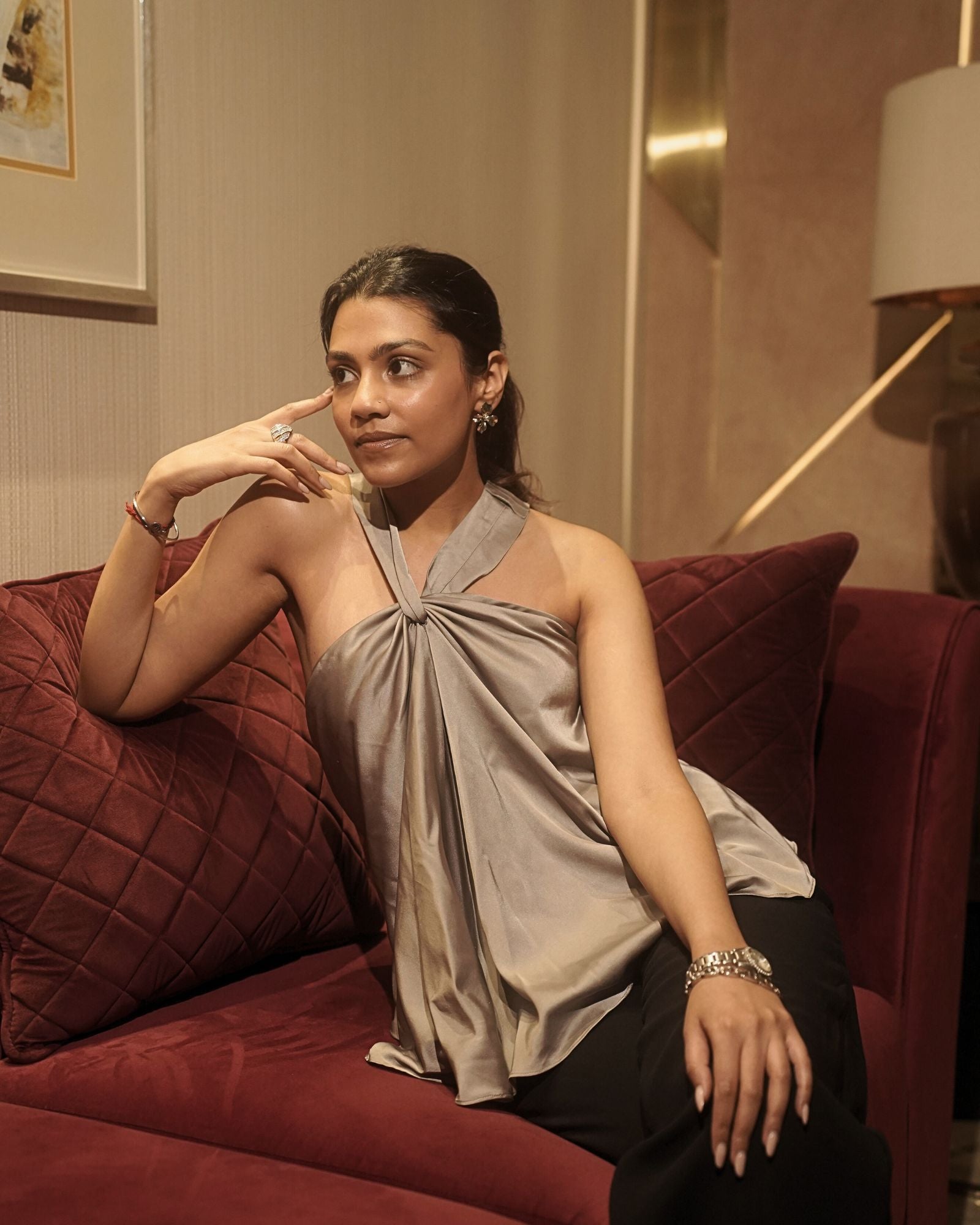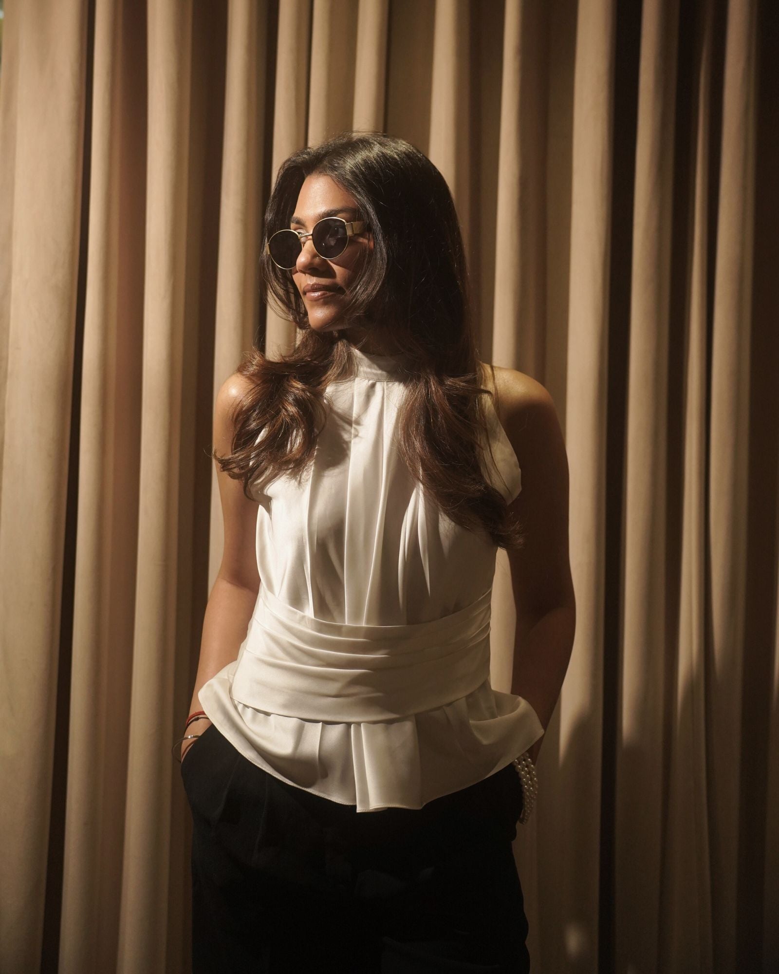 The Ivara Co-ord Set is the embodiment of sculptural grace. With its clean, architectural lines and subtle cut-out detailing, it evokes the serene balance of light and shadow reflected on still water. The fitted bodice flows into tailored trousers, creating a silhouette that is both modern and timeless.
