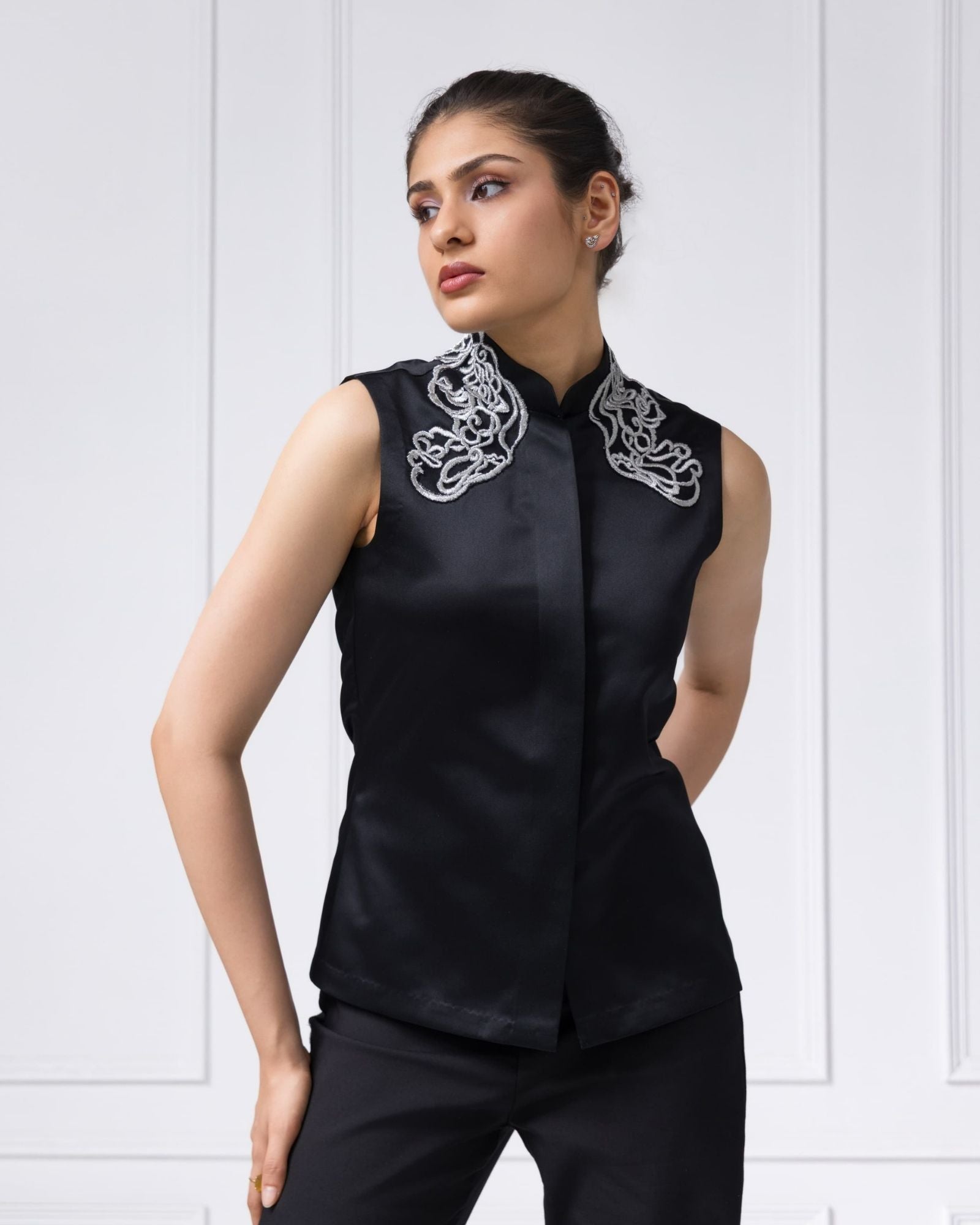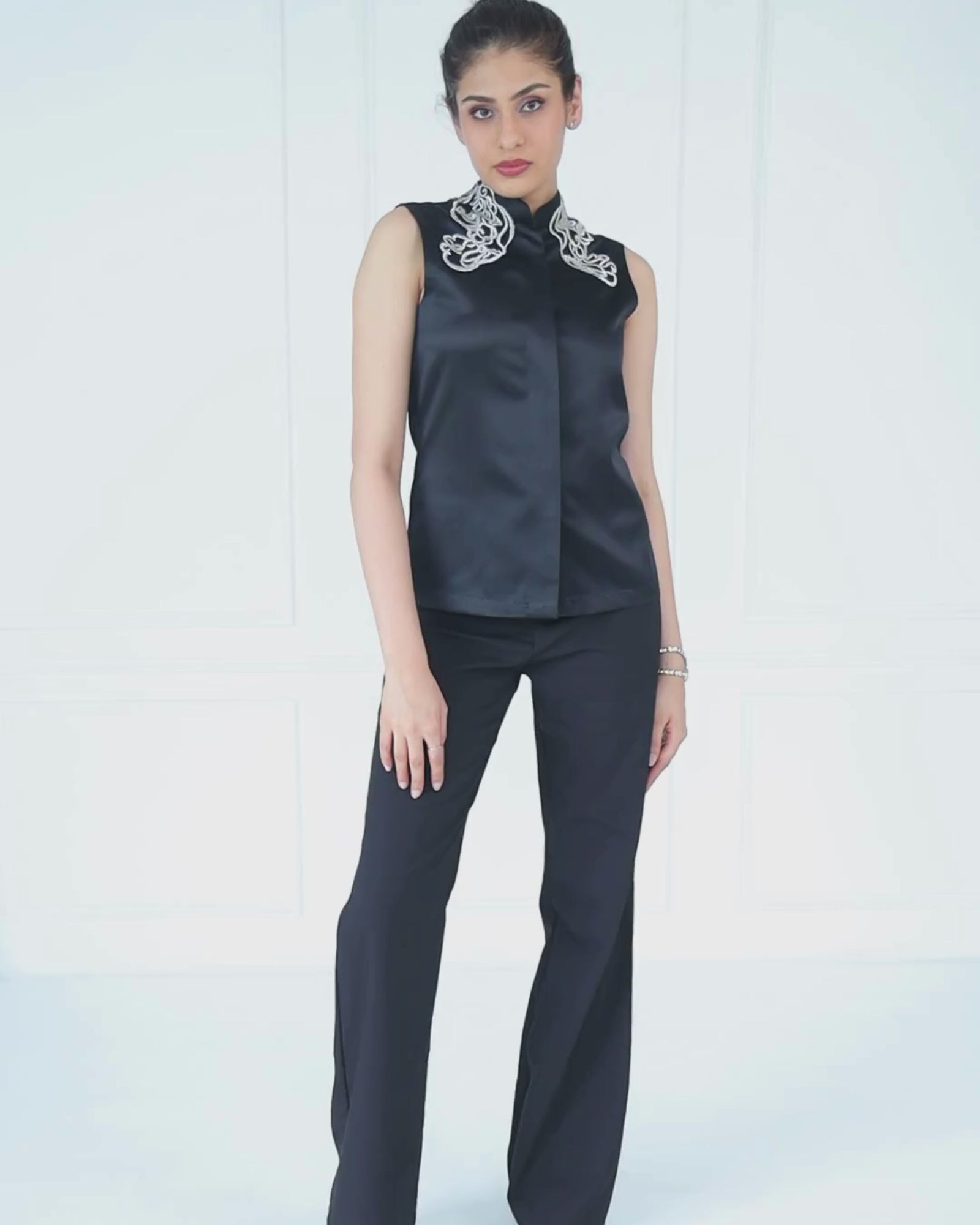 With a sharp, sculpted silhouette and a top that speaks volumes through its detail, this co-ord is tailored for presence. Whether worn together or styled apart, it’s the kind of set that commands attention — effortlessly.