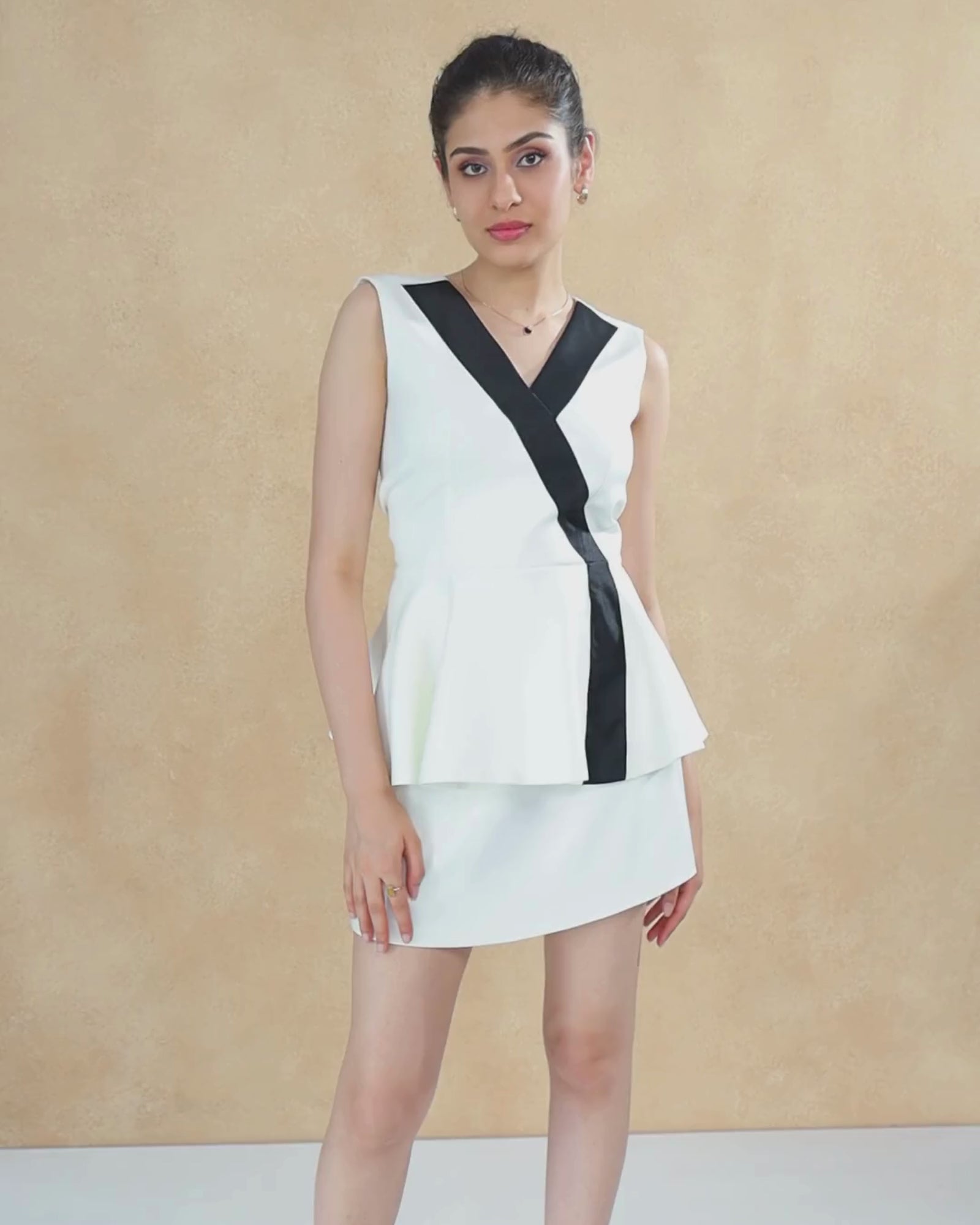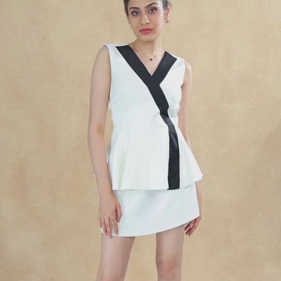 * Sculpted peplum top flares gently at the waist, creating definition and a playful silhouette